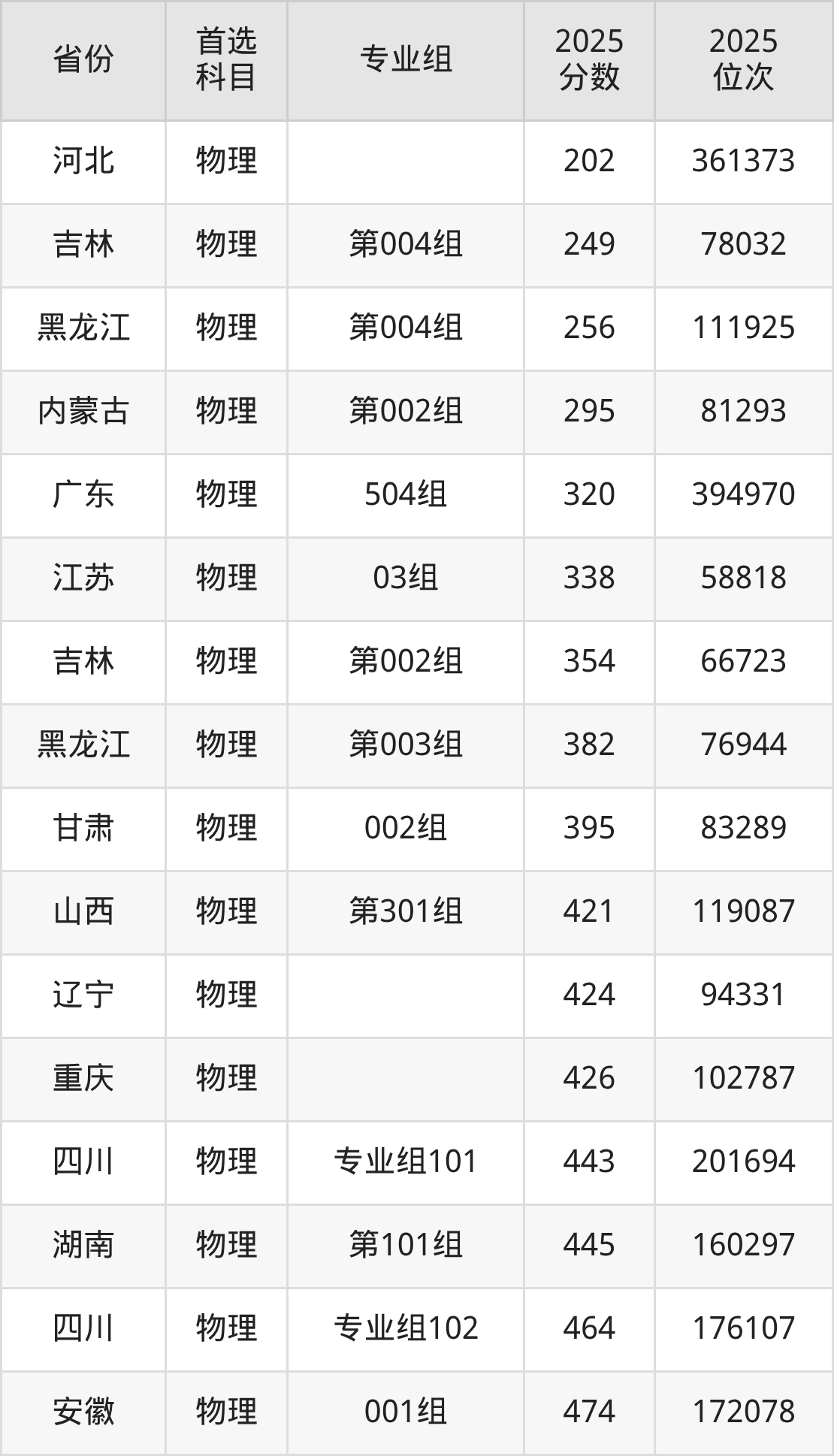 物理类最低分对应地区为四川(专业组101),录取位次为284789;最高分对应地区为江苏(02组),录取位次为169250,超本科线32分。