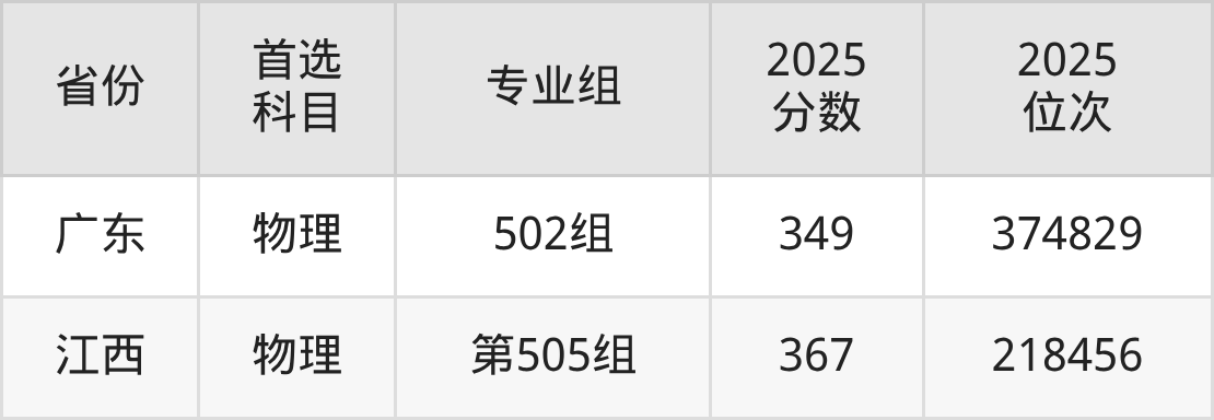物理类最低分对应地区为江西(第503组),录取位次为259802;最高分对应地区为江西(第505组),录取位次为218456,超专科线127分。