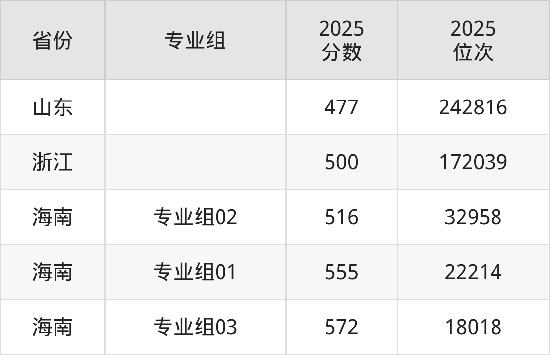 最低分对应地区为山东,录取位次为242816,超一段线36分;最高分对应地区为海南(专业组03),录取位次为18018,超本科线92分。