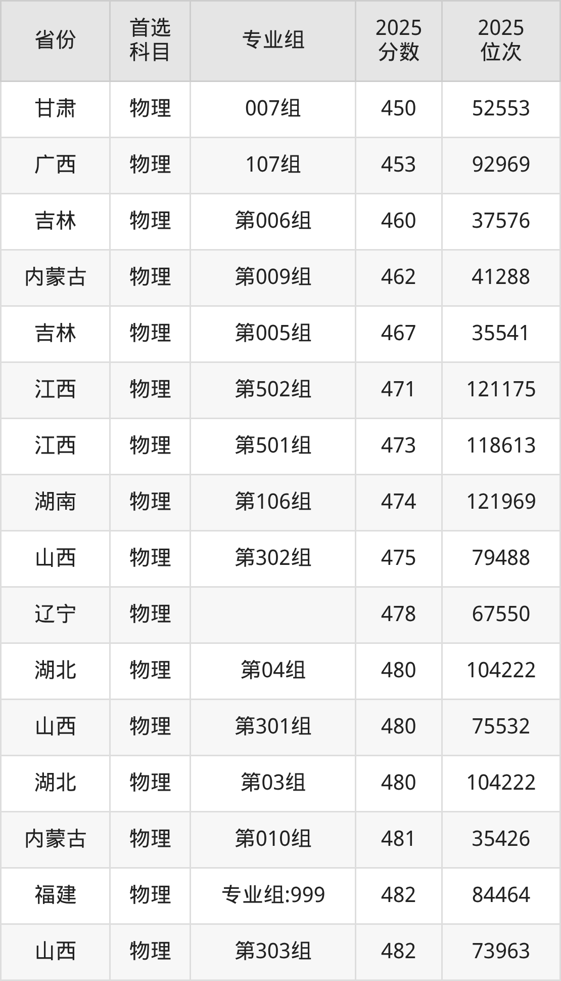 物理类:第017组418分、62502名,第018组420分、61673名,第019组421分、61243名,第020组(中外合作)399分、70212名,第021组(八省区对等协作计划)390分、73796名;