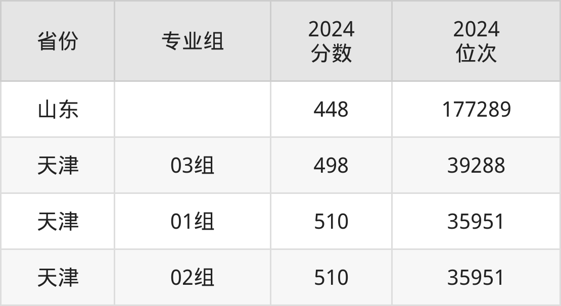 最低分对应地区为山东,录取位次为177289,超一段线57分;最高分对应地区为天津(02组),录取位次为35951,超本科线35分。