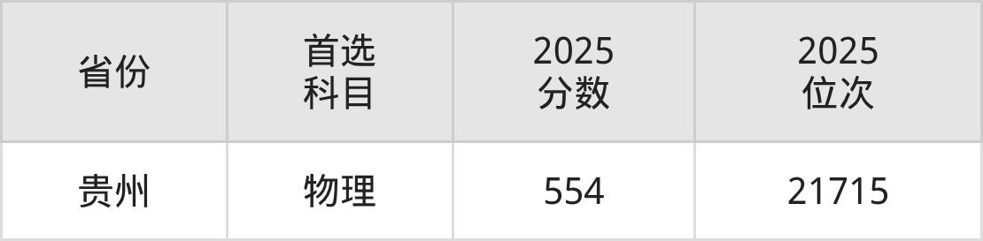 物理类最低分对应地区为贵州,录取位次为21715,超本科线167分。