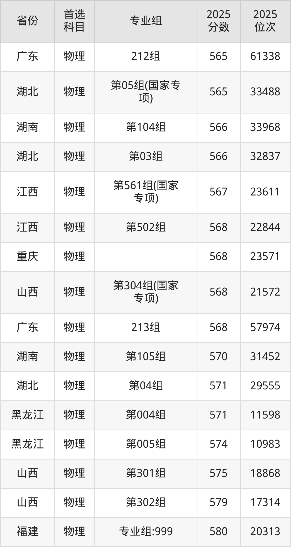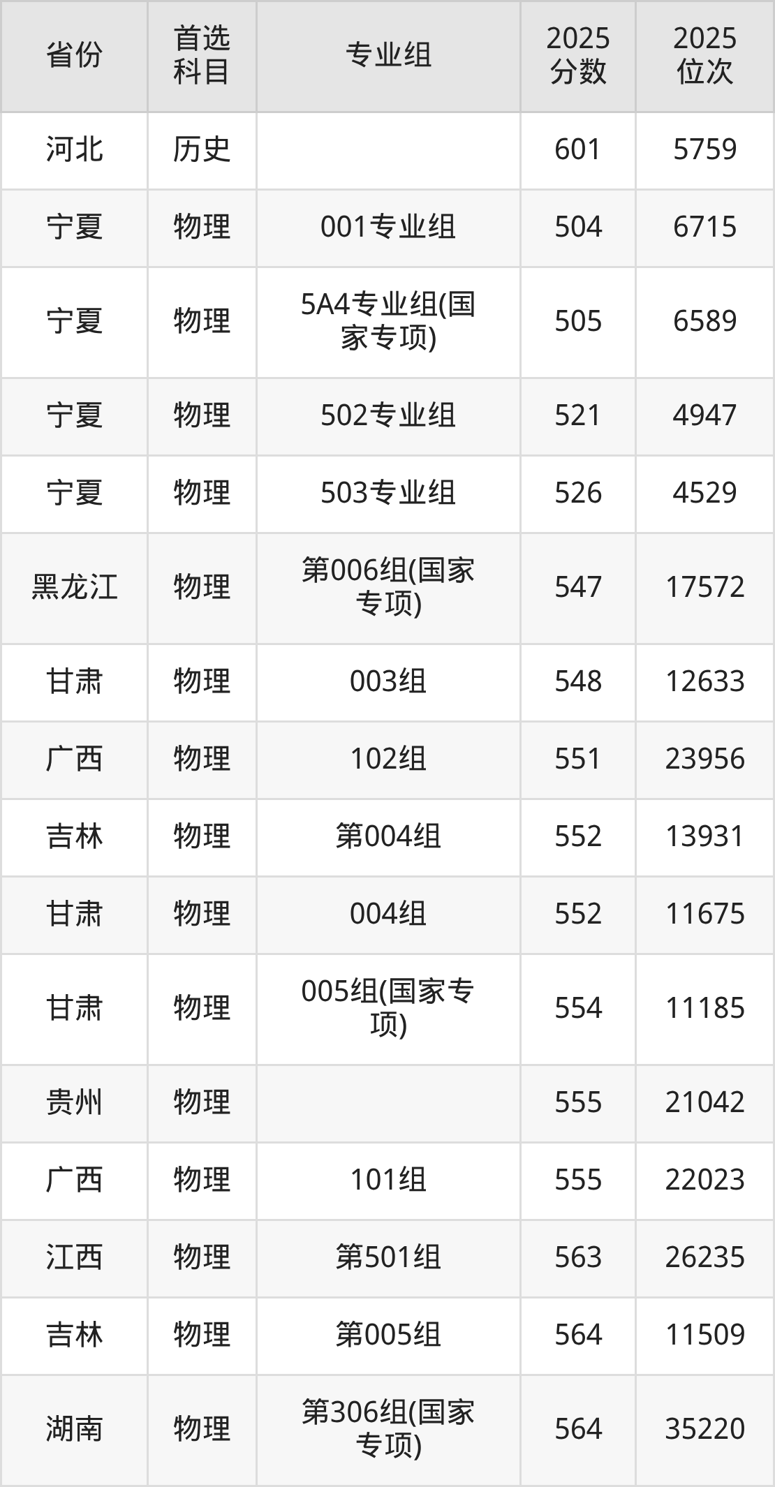 物理类最低分对应地区为宁夏(001专业组),录取位次为6715,超本科B132分;最高分对应地区为四川(专业组103),录取位次为24083,超本科B161分。