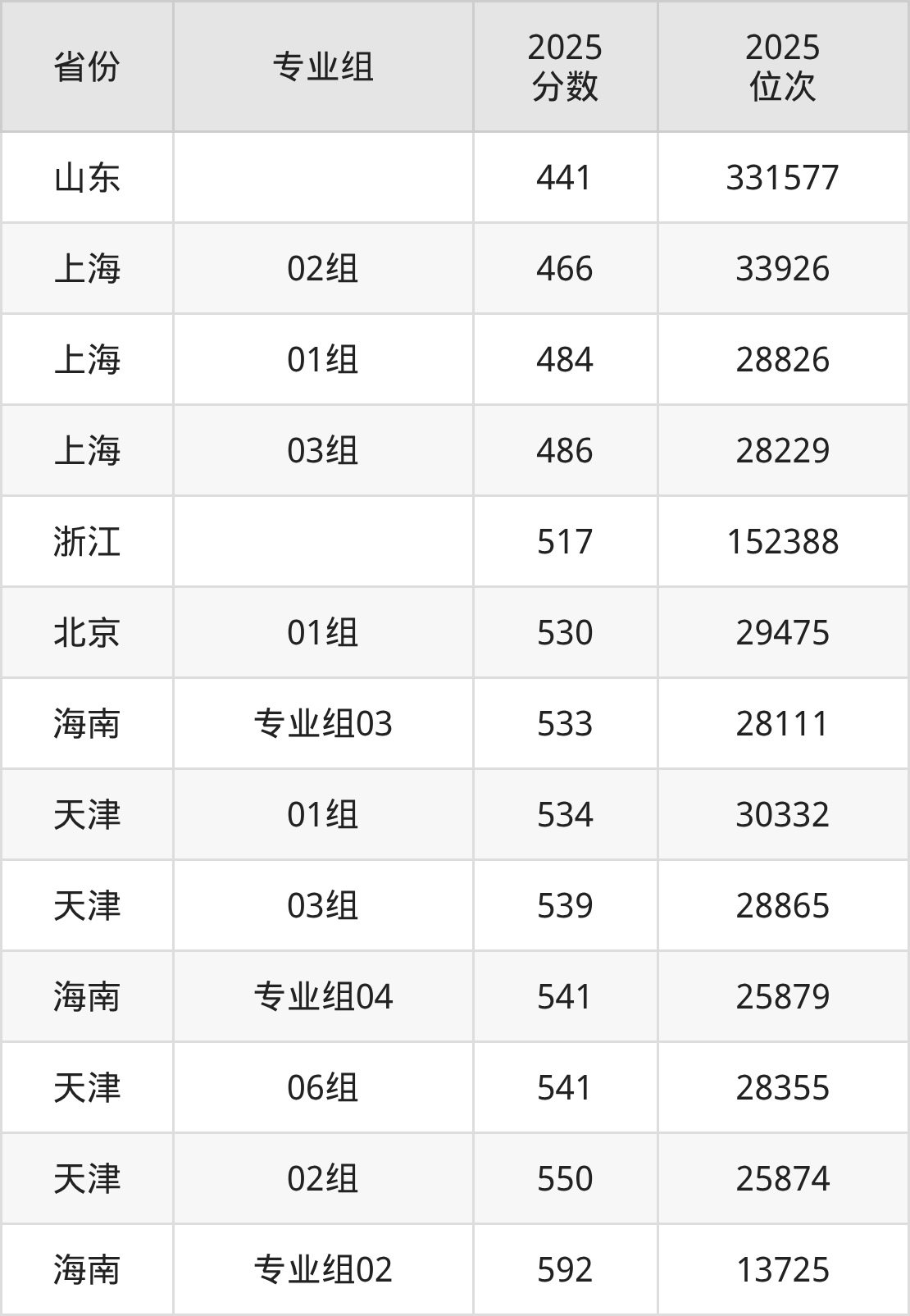 最低分对应地区为山东,录取位次为331577,超一段线54分;最高分对应地区为海南(专业组02),录取位次为13725,超本科线112分。