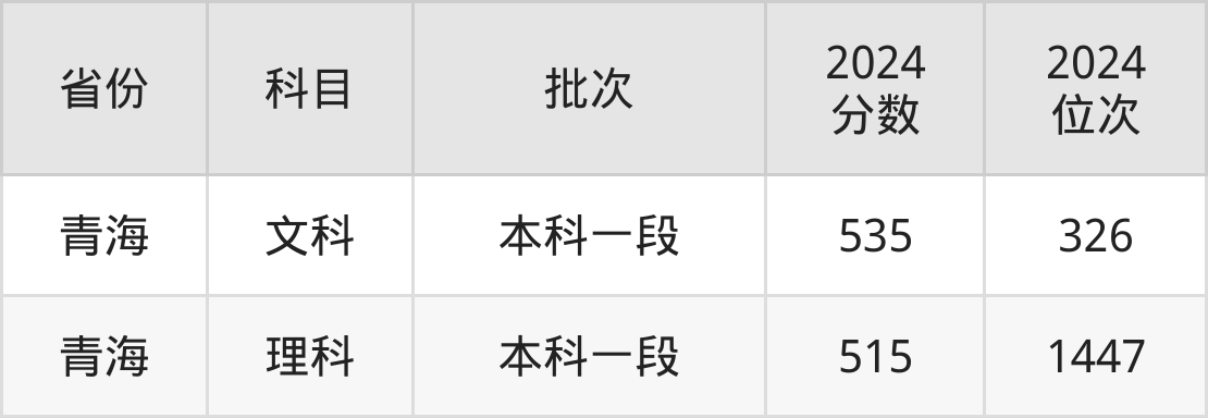 理科最低分对应地区为青海,录取位次为1447,超一本线172分。