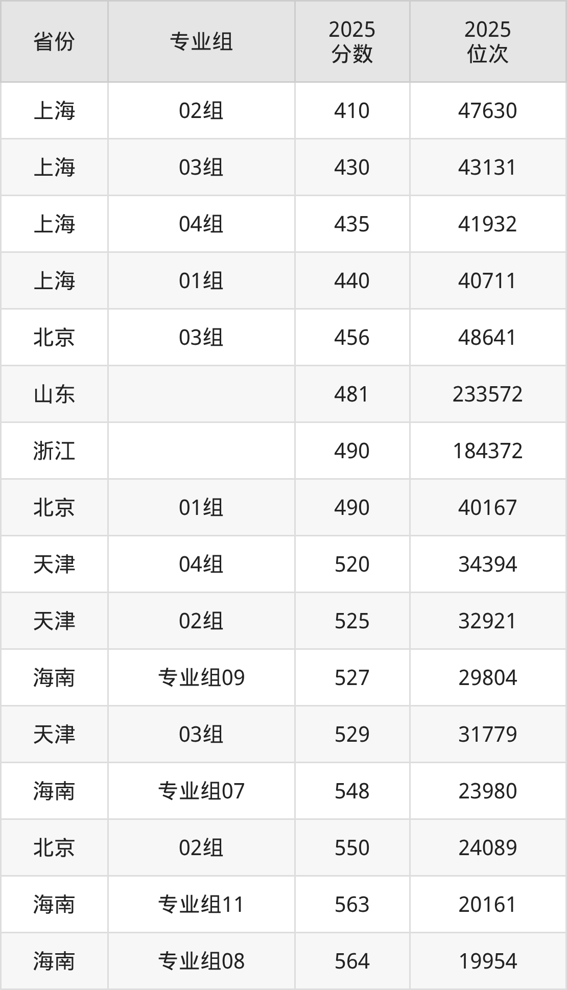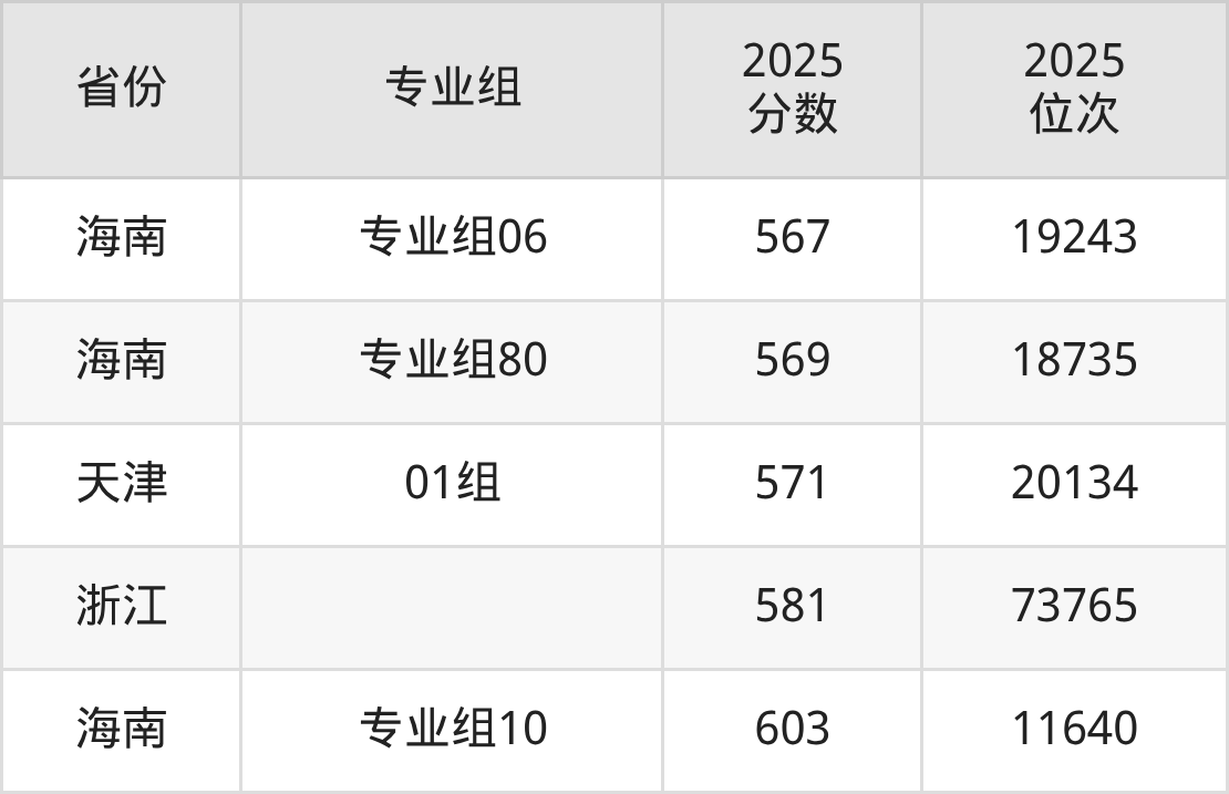 最低分对应地区为上海(02组),录取位次为47630,超本科线8分;最高分对应地区为海南(专业组10),录取位次为11640,超本科线123分。