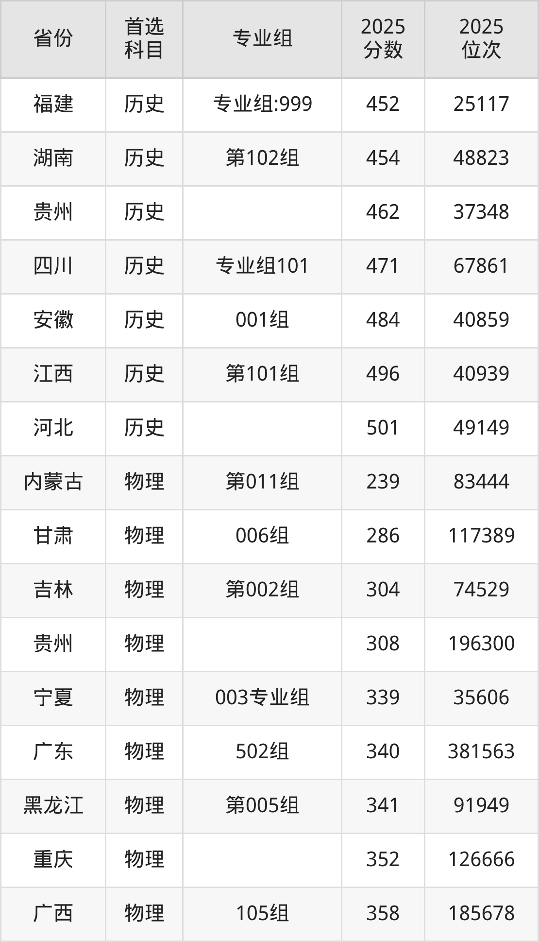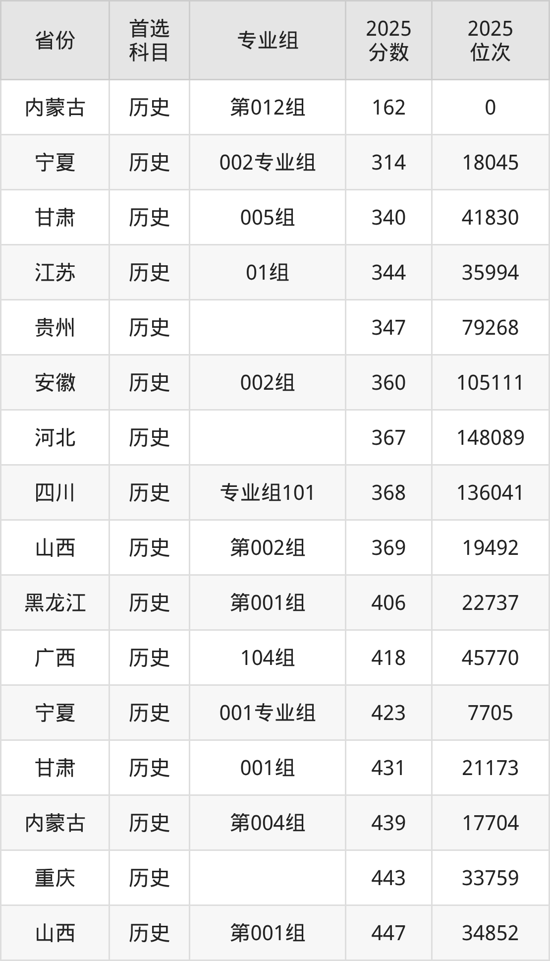 历史类:001组469分、42229名,002组312分、112310名;