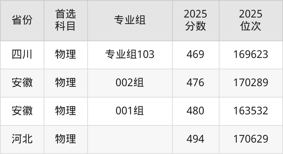 物理类最低分对应地区为内蒙古(第011组),录取位次为83444,超专科线79分;最高分对应地区为河北,录取位次为170629,超本科线35分。