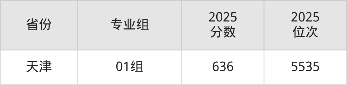 最低分对应地区为北京(03组),录取位次为24611,超本科线118分;最高分对应地区为天津(01组),录取位次为5535。
