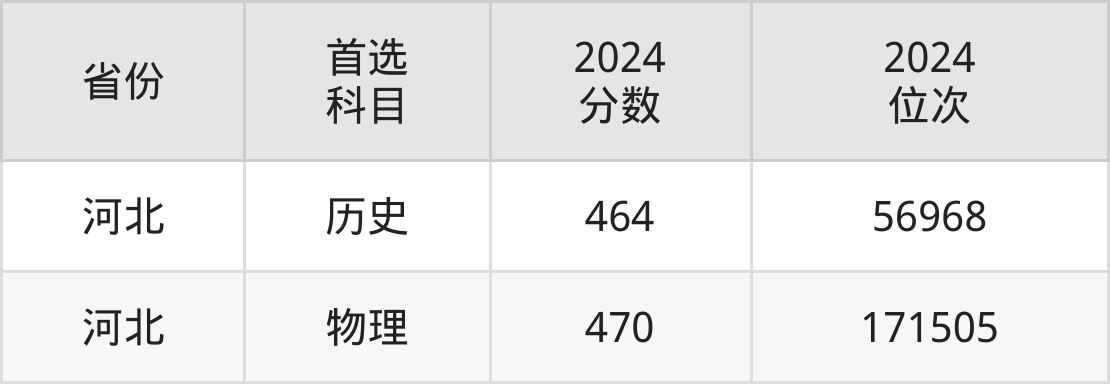 历史类最低分对应地区为河北,录取位次为56968,超本科线15分。