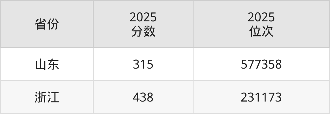 最低分对应地区为山东,录取位次为577358,超二段线165分;最高分对应地区为浙江,录取位次为231173。