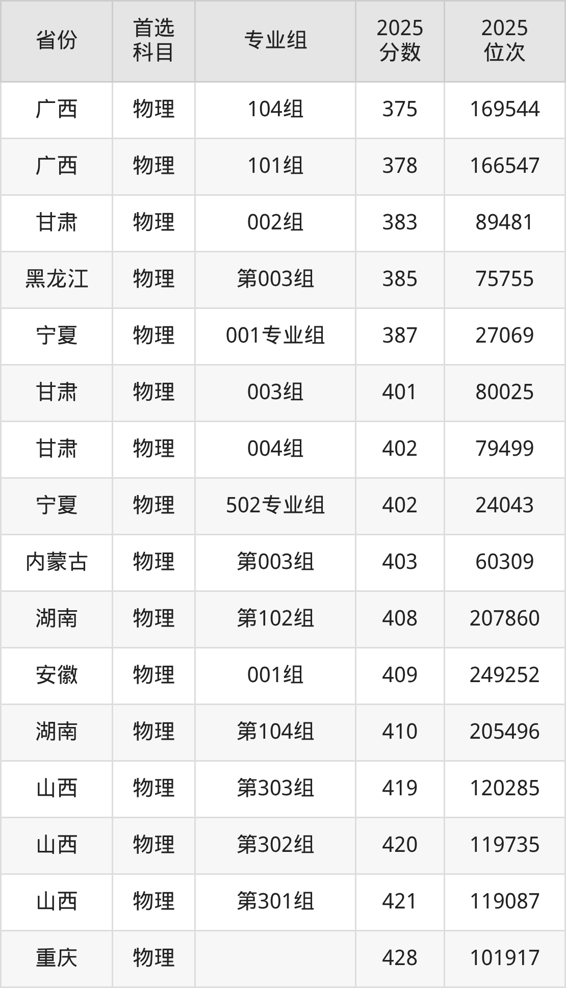 物理类:第003组403分、60309名,第005组429分、51996名;