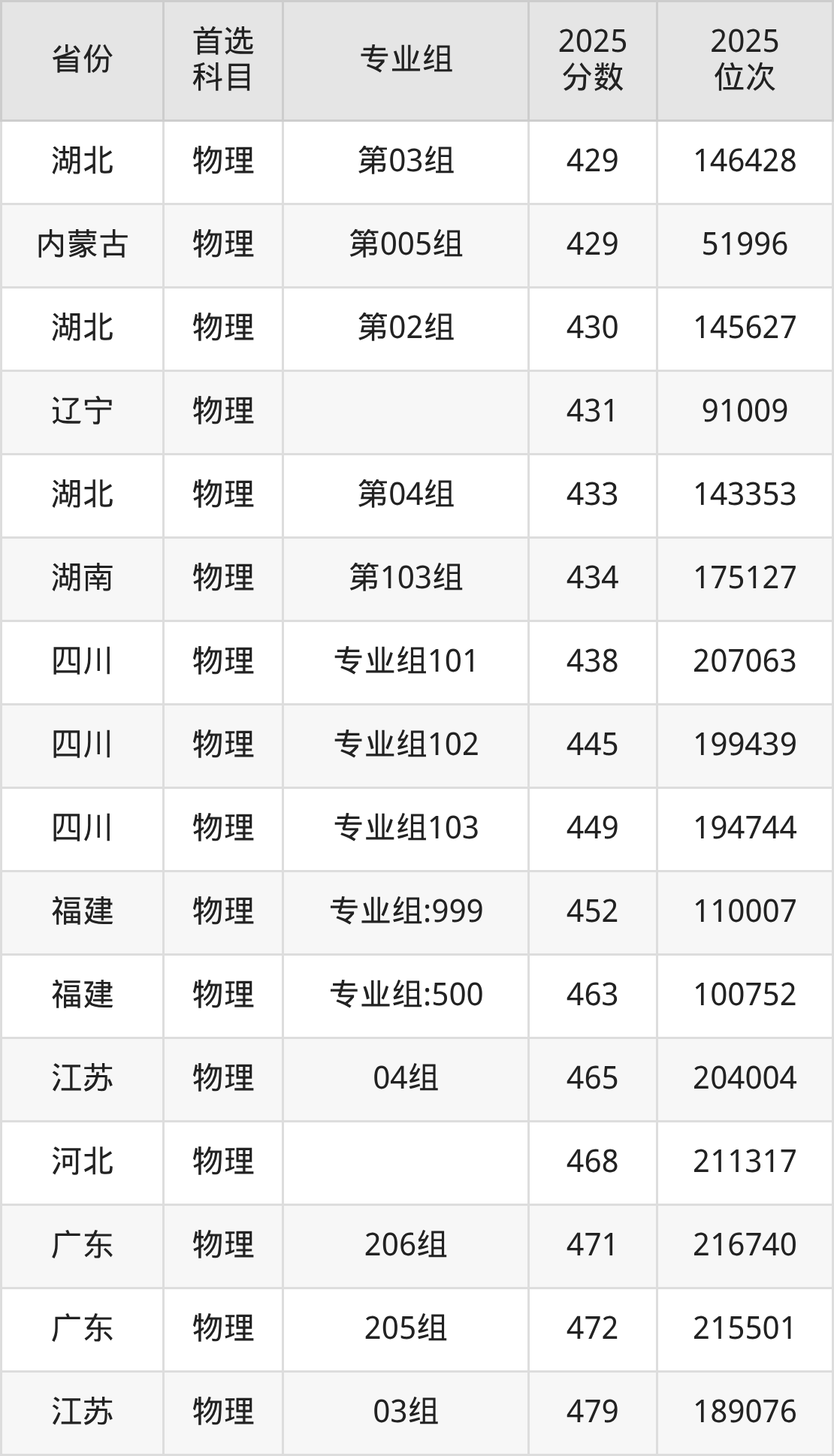 物理类最低分对应地区为江苏(05组),录取位次为66935;最高分对应地区为江苏(03组),录取位次为189076,超本科线16分。