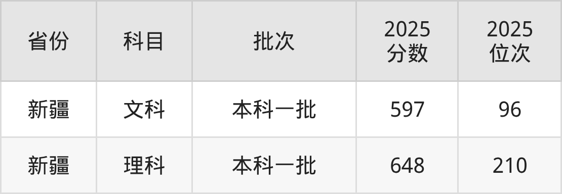 理科最低分对应地区为新疆,录取位次为210,超一本线227分。