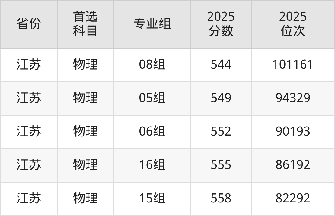 物理类最低分对应地区为吉林(第033组),录取位次为63497,超本科线29分;最高分对应地区为江苏(15组),录取位次为82292,超本科线95分。