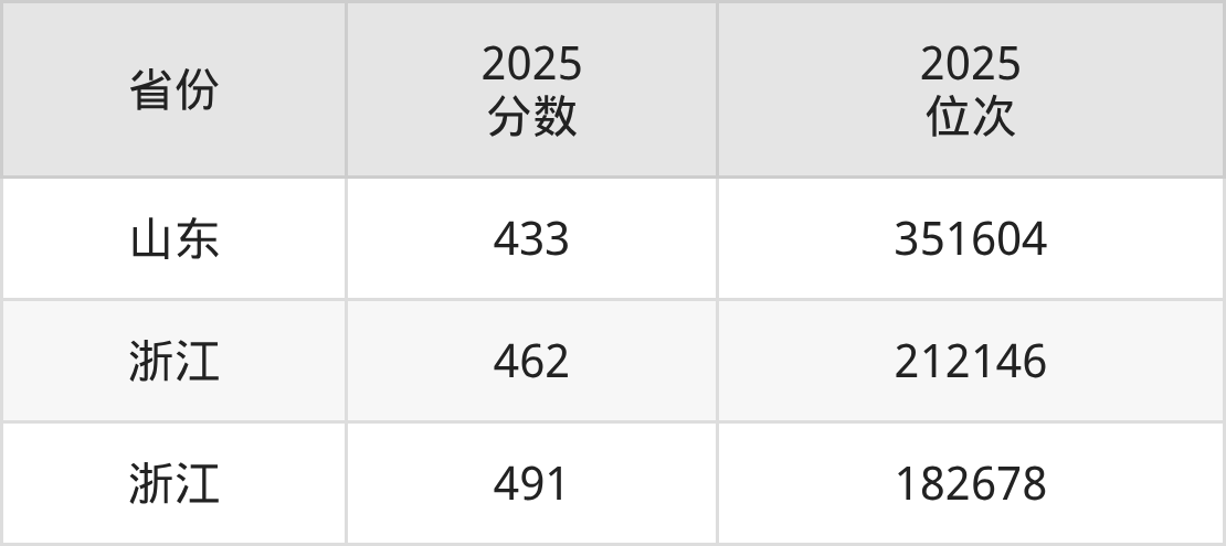 最低分对应地区为山东,录取位次为351604,超二段线283分;最高分对应地区为浙江,录取位次为182678,超一段线1分。