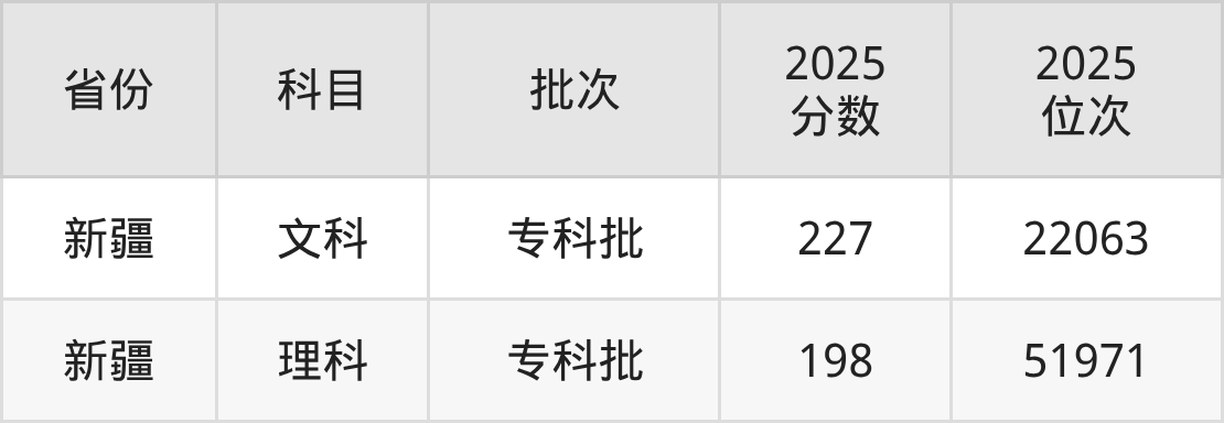 理科最低分对应地区为新疆,录取位次为51971,超专科线58分。