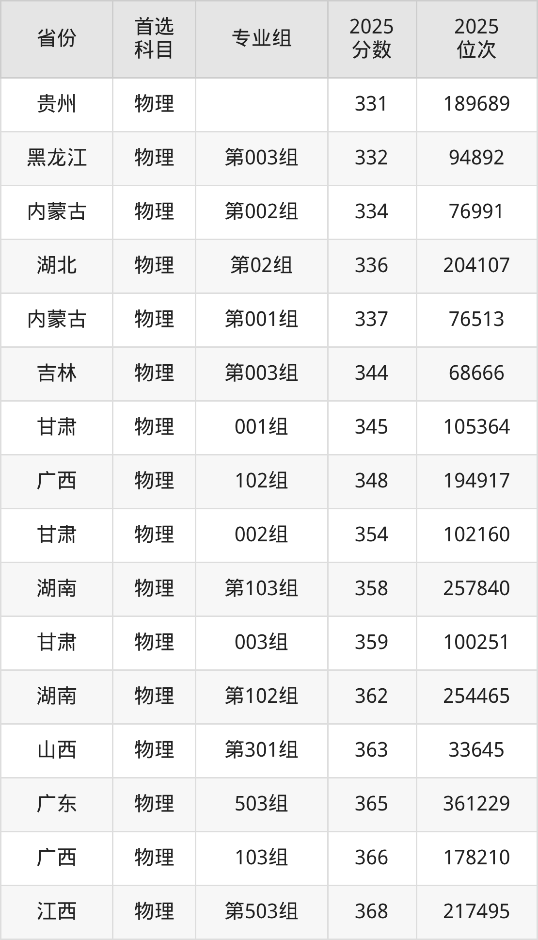 物理类:331分、189689名;
