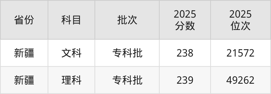 理科最低分对应地区为新疆,录取位次为49262,超专科线99分。