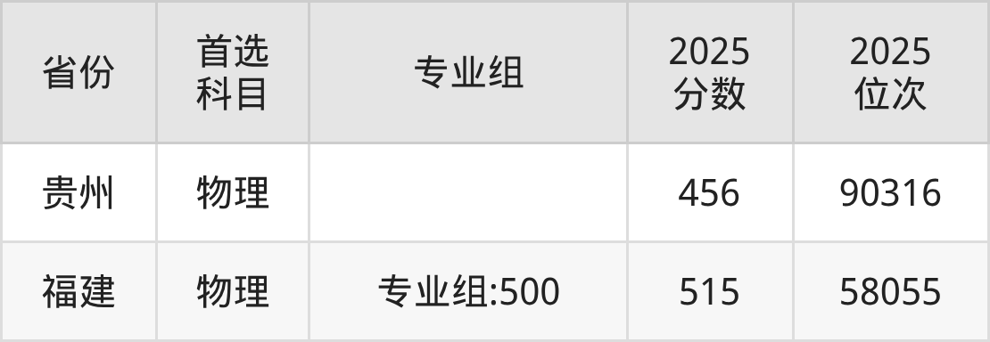 物理类最低分对应地区为贵州,录取位次为90316,超本科线69分;最高分对应地区为福建(专业组:500),录取位次为58055,超本科线74分。