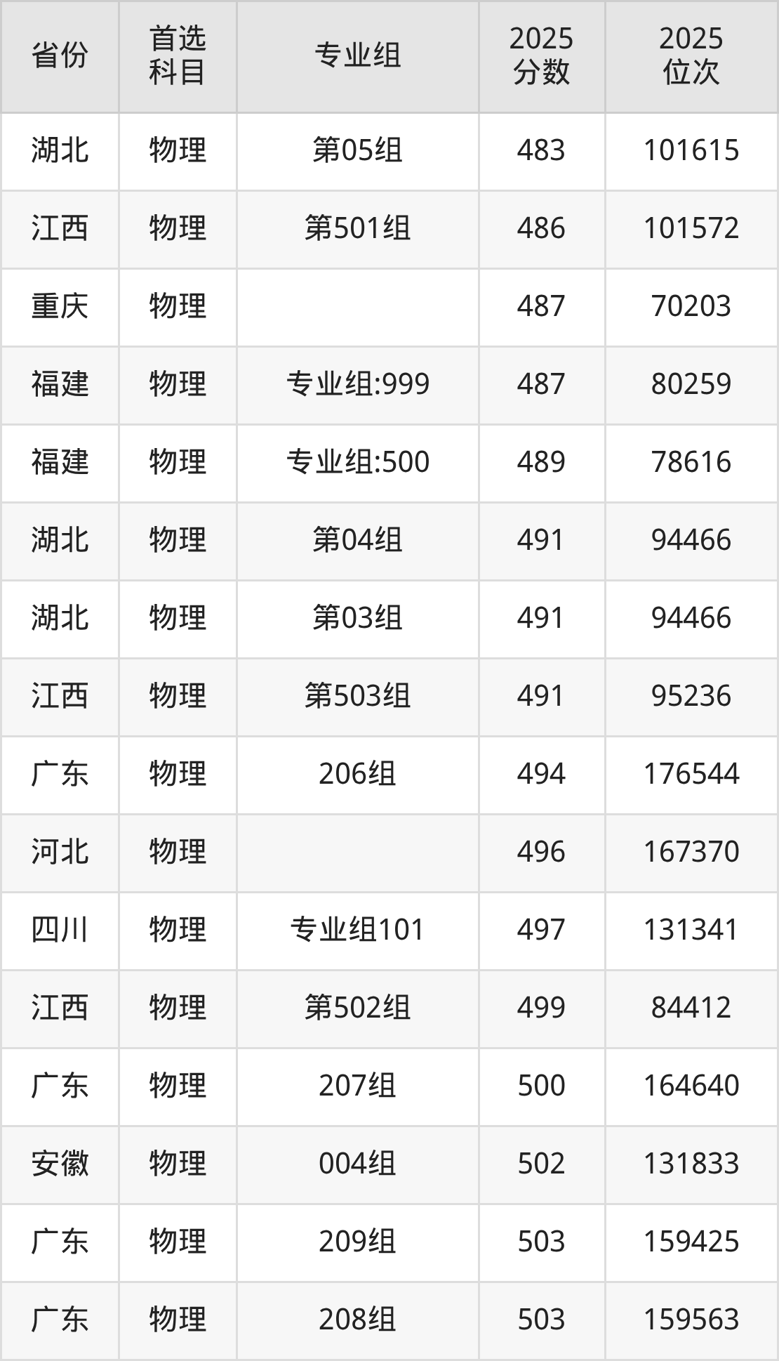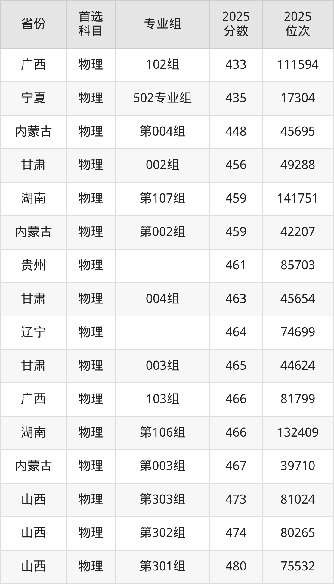 物理类:第002组459分、42207名,第003组467分、39710名,第004组448分、45695名;