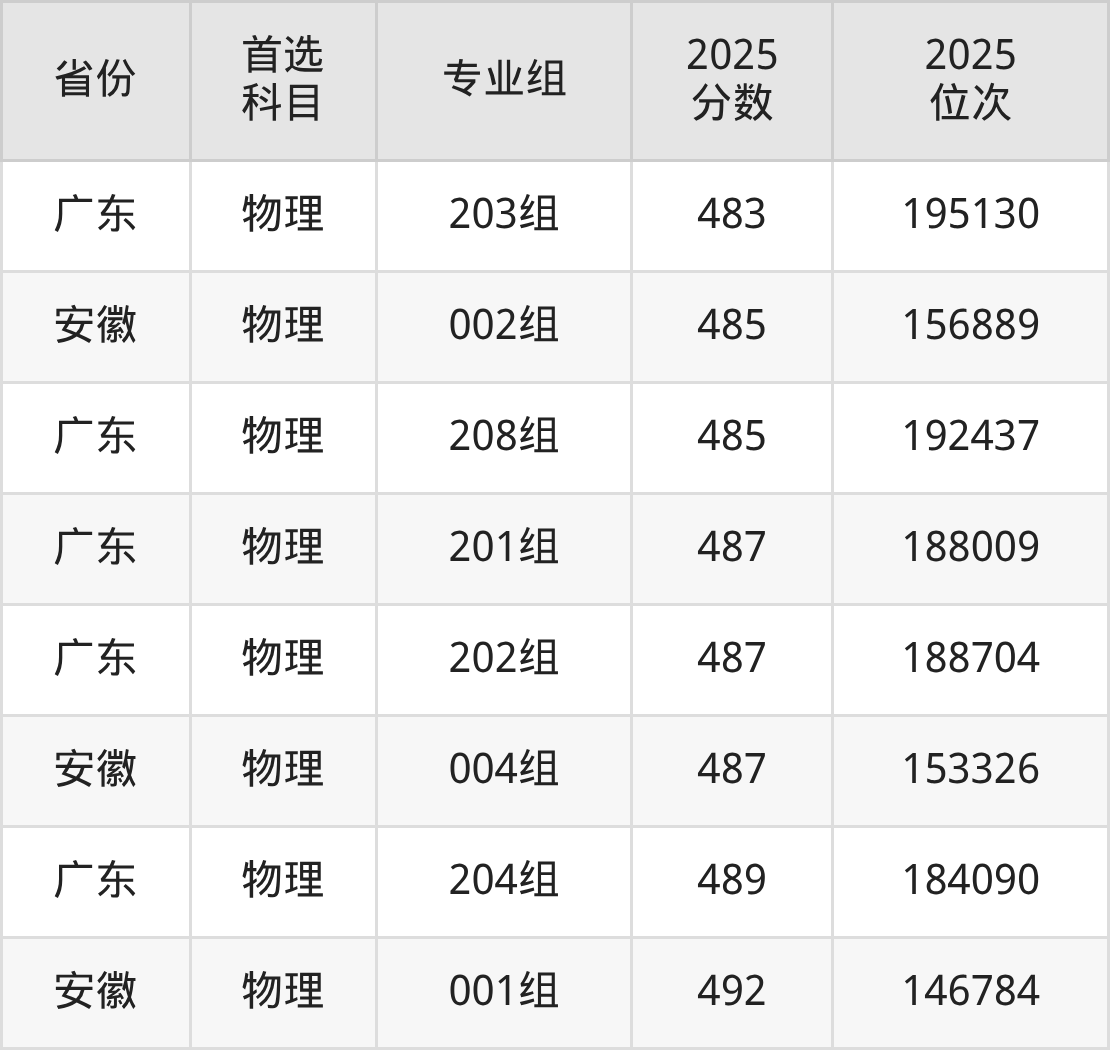 物理类:201组487分、188009名,202组487分、188704名,203组483分、195130名,204组489分、184090名,207组481分、198364名,208组485分、192437名;