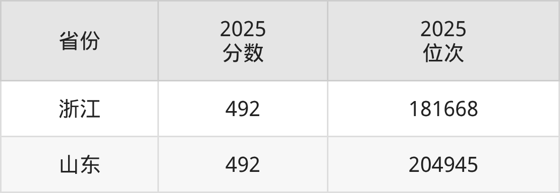 最低分对应地区为浙江,录取位次为181668,超一段线2分;最高分对应地区为山东,录取位次为204945,超二段线342分。