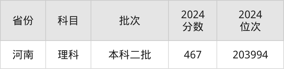 理科最低分对应地区为河南,录取位次为203994,超二本线71分。