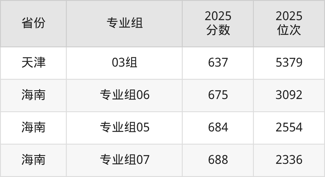 最低分对应地区为上海(03组(中外合作)),录取位次为11525,超本科线144分;最高分对应地区为海南(专业组07),录取位次为2336,超本科线208分。