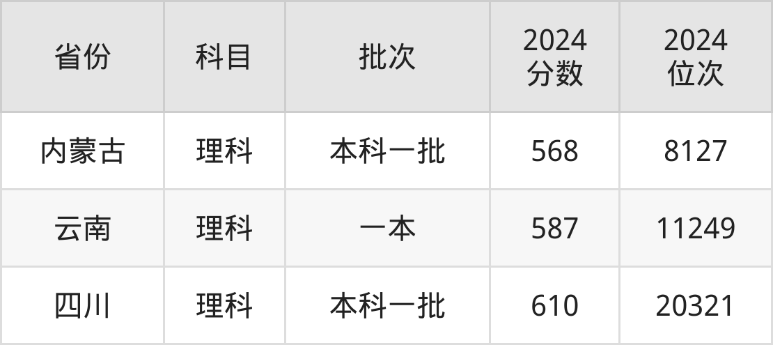 理科最低分对应地区为内蒙古,录取位次为8127,超97分;最高分对应地区为四川,录取位次为20321,超一本线71分。