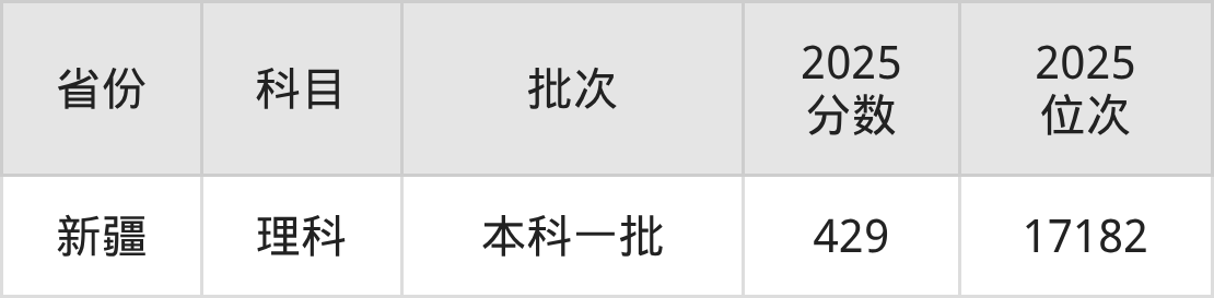 理科最低分对应地区为新疆,录取位次为17182,超一本线8分。