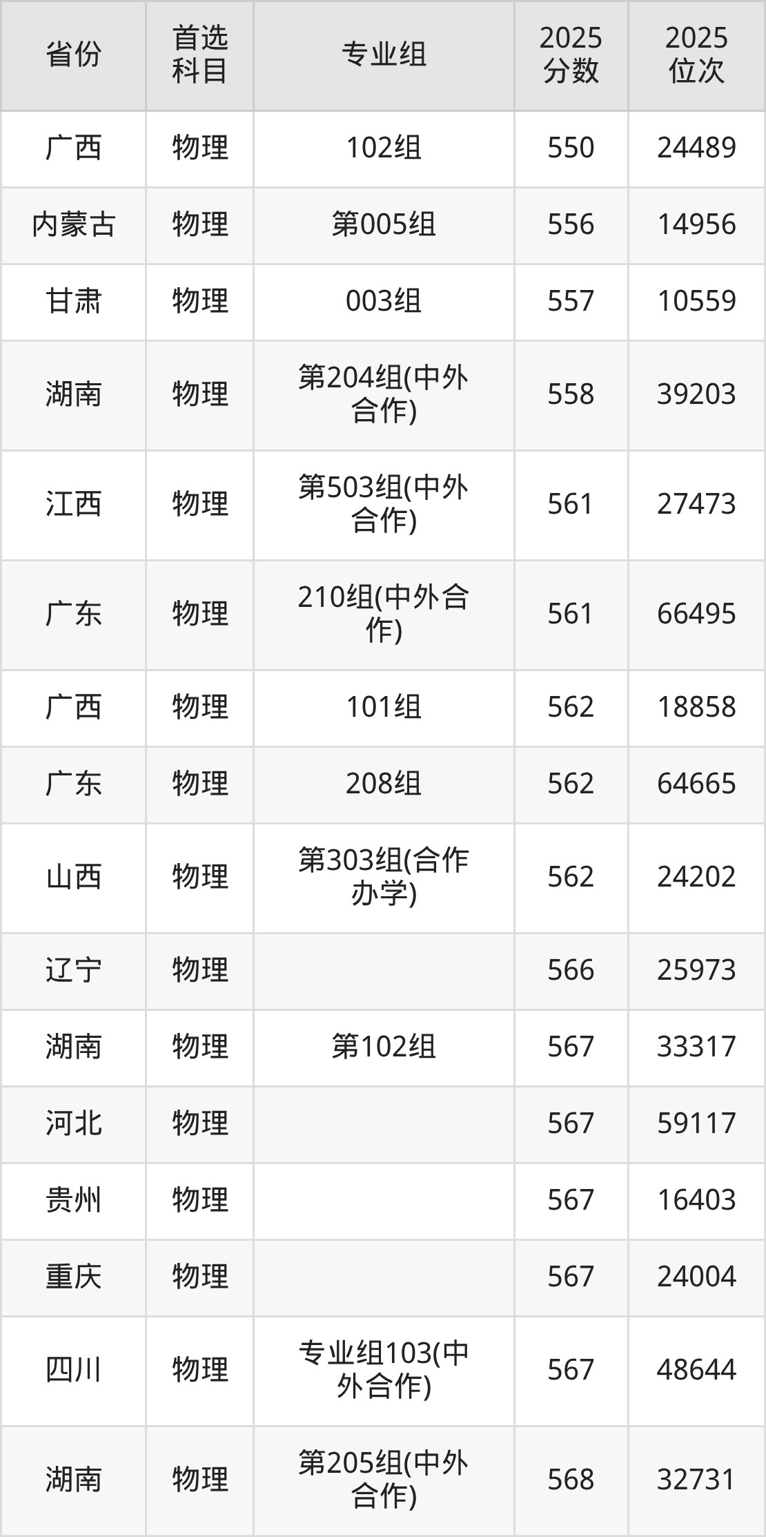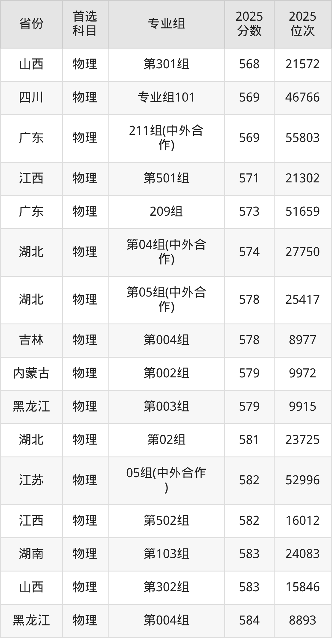 物理类:第501组571分、21302名,第502组582分、16012名,第503组(中外合作)561分、27473名;