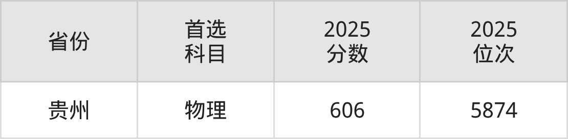 物理类最低分对应地区为贵州,录取位次为5874,超本科线219分。