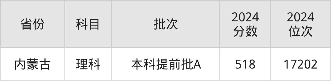 理科最低分对应地区为内蒙古,录取位次为17202,超一本线47分。
