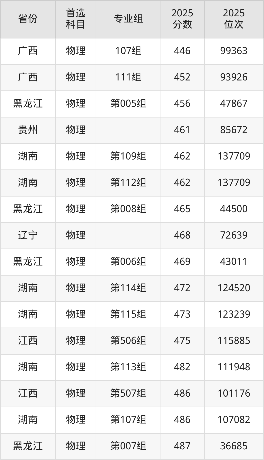 物理类:469分、67986名;