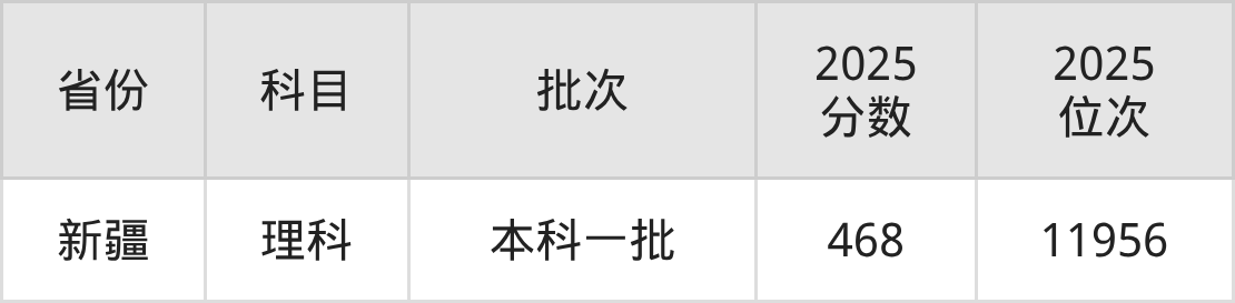 理科最低分对应地区为新疆,录取位次为11956,超一本线47分。