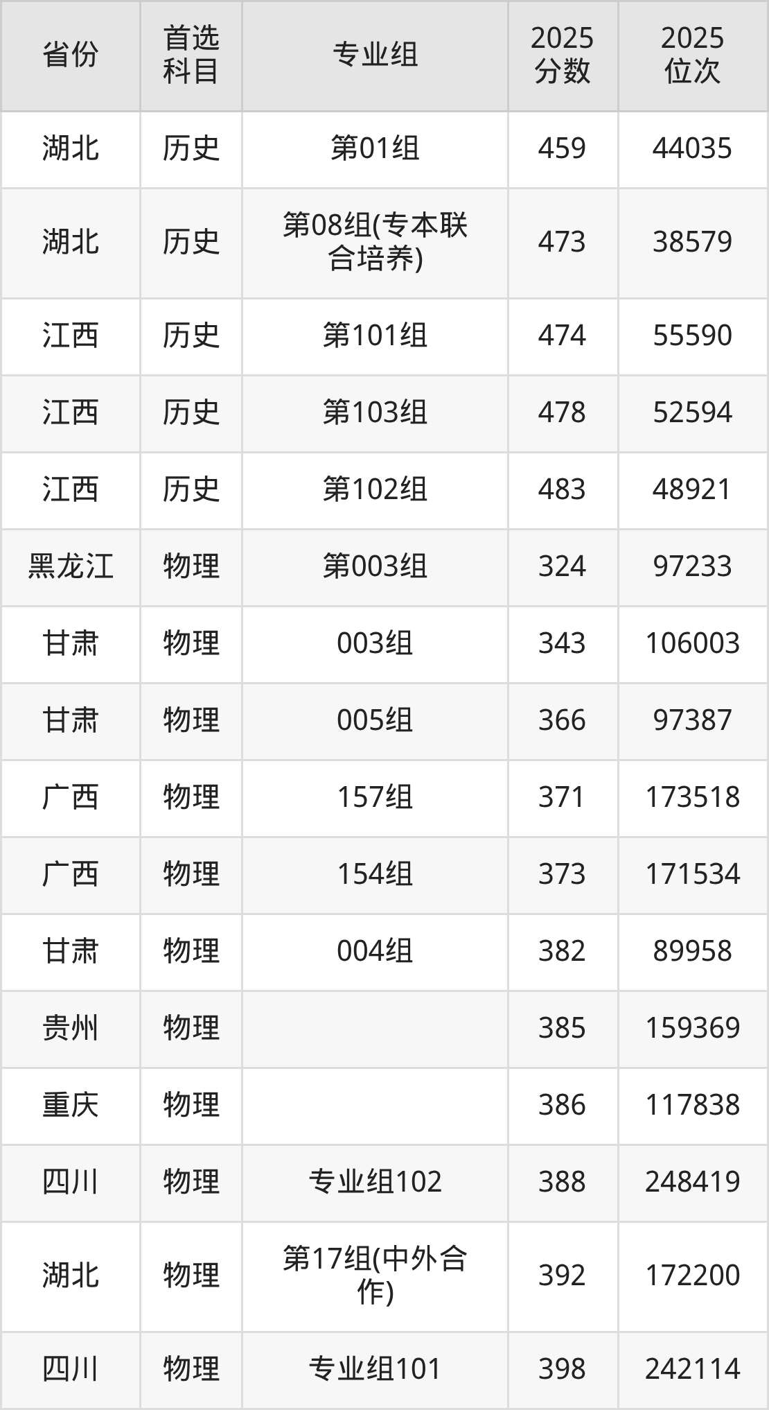 为了方便各地区考生们查看武汉城市职业学院的录取情况,本文也整理出2025年武汉城市职业学院在全国各省的录取分数线,供参考。