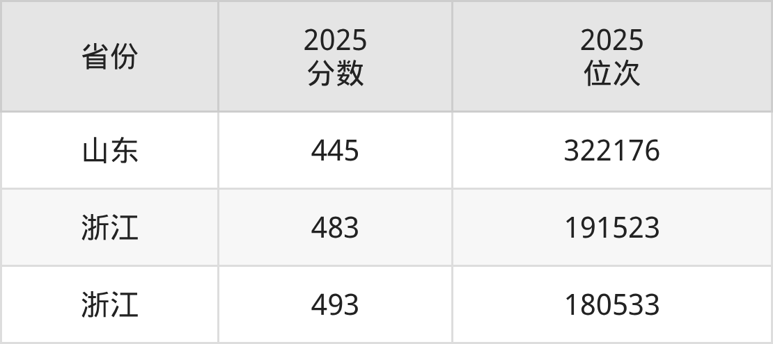 最低分对应地区为山东,录取位次为322176,超二段线295分;最高分对应地区为浙江,录取位次为180533,超一段线3分。