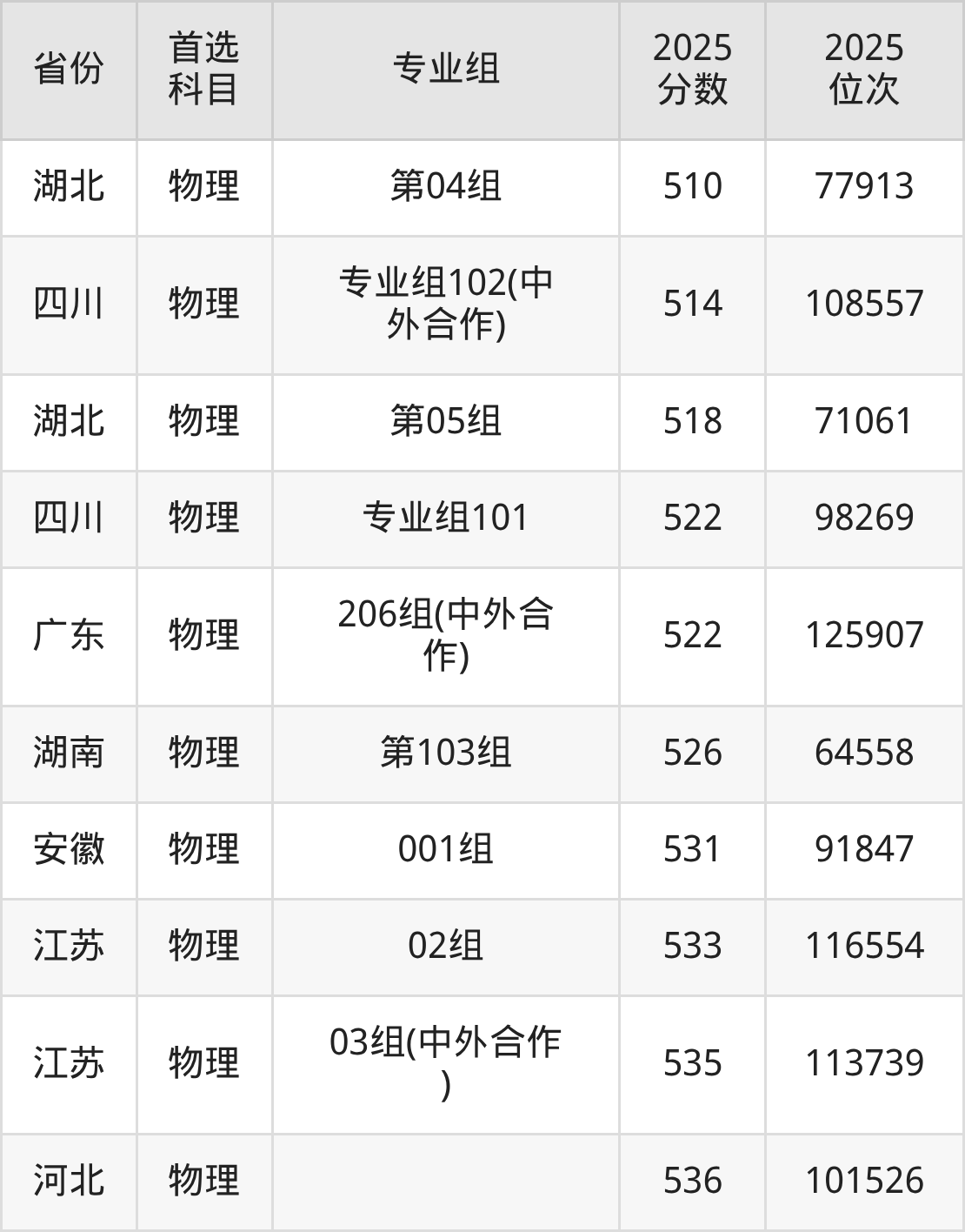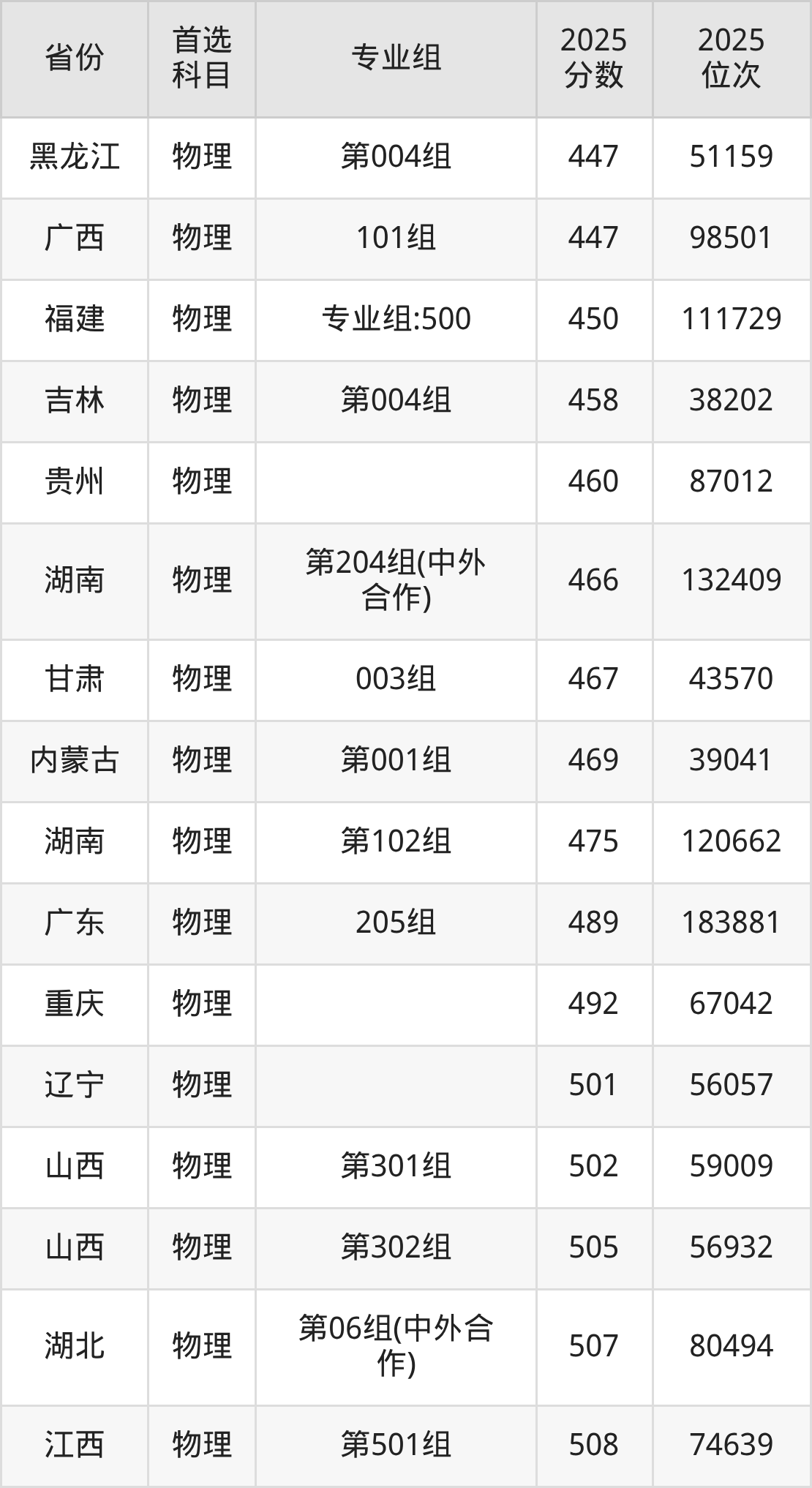 物理类最低分对应地区为宁夏(501专业组),录取位次为17304,超本科B63分;最高分对应地区为河北,录取位次为101526,超本科线79分。