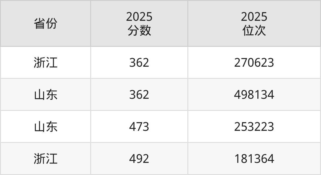 最低分对应地区为浙江,录取位次为270623,超二段线94分;最高分对应地区为浙江,录取位次为181364,超一段线63分。