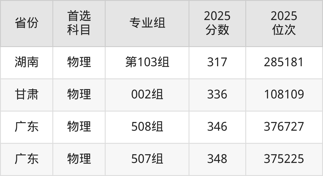 物理类最低分对应地区为四川(专业组101),录取位次为284789;最高分对应地区为广东(507组),录取位次为375225,超专科线148分。