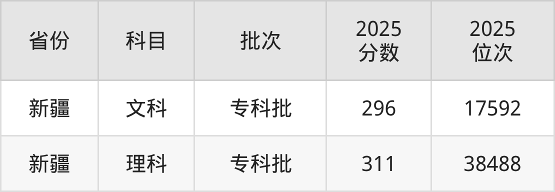 理科最低分对应地区为新疆,录取位次为38488,超专科线171分。