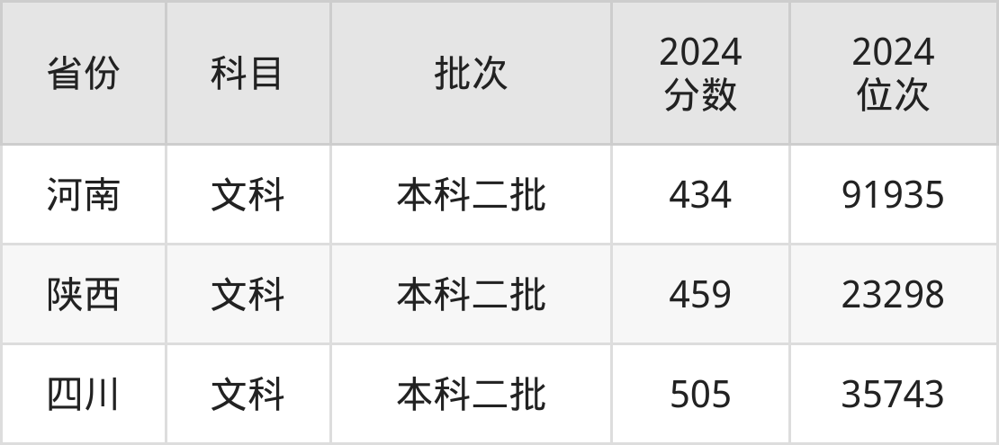 文科最低分对应地区为河南,录取位次为91935,超二本线6分;最高分对应地区为四川,录取位次为35743,超二本线48分。