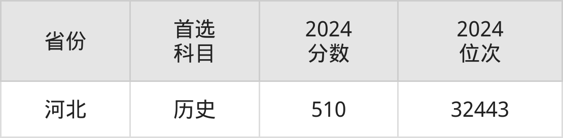 历史类最低分对应地区为河北,录取位次为32443,超本科线61分。