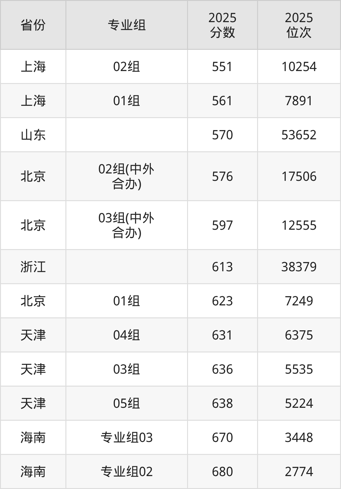 最低分对应地区为上海(02组),录取位次为10254,超本科线149分;最高分对应地区为海南(专业组02),录取位次为2774。