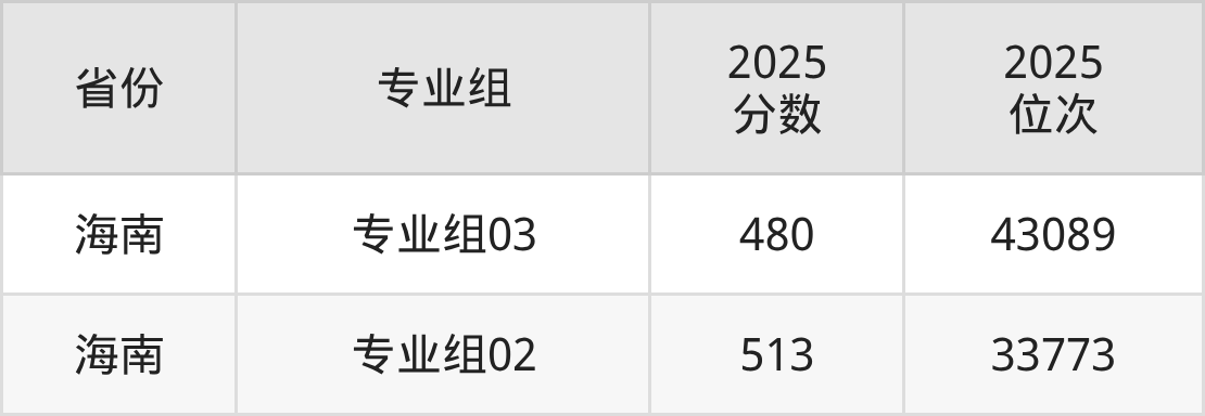 最低分对应地区为海南(专业组03),录取位次为43089;最高分对应地区为海南(专业组02),录取位次为33773,超本科线33分。