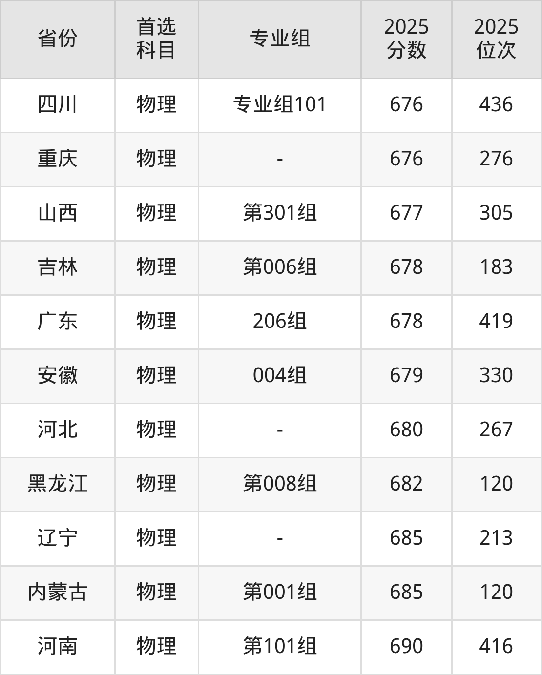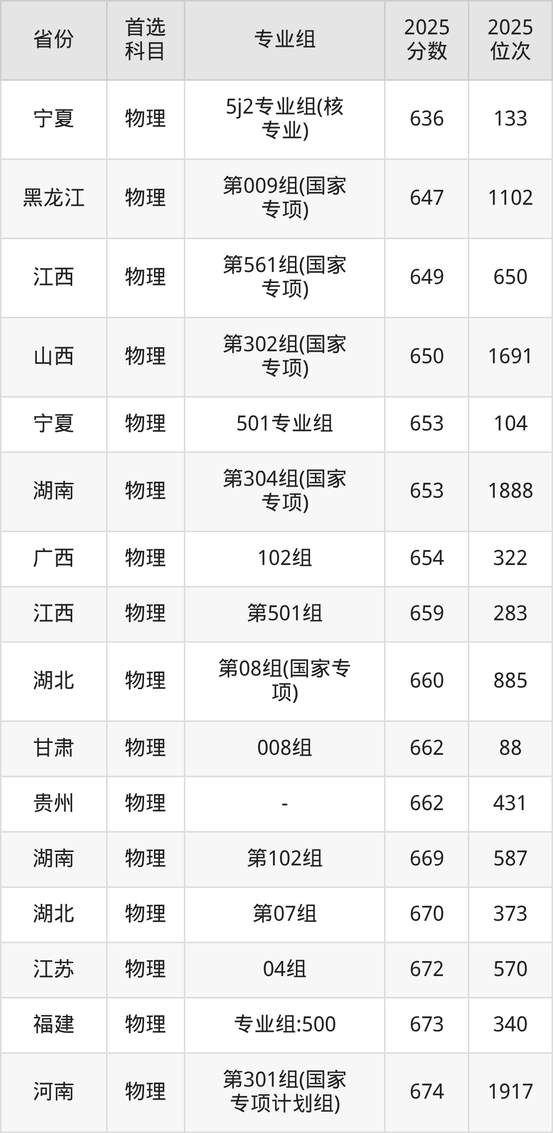 物理类最低分对应地区为宁夏(5A3专业组(国家专项)),录取位次为384,超本科B241分;最高分对应地区为河南(第101组),录取位次为416,超本科线263分。