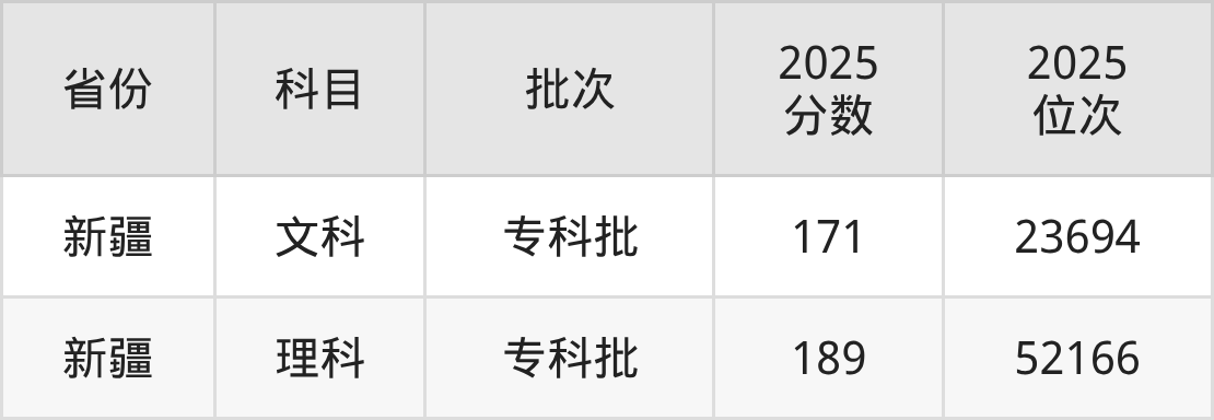 理科最低分对应地区为新疆,录取位次为52166,超专科线49分。