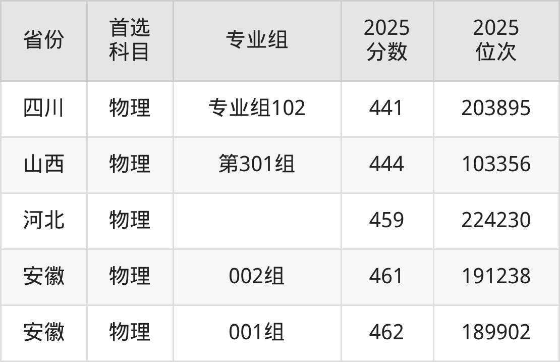 物理类最低分对应地区为广西(151组),录取位次为172508,超本科线2分;最高分对应地区为安徽(001组),录取位次为189902,超本科线1分。