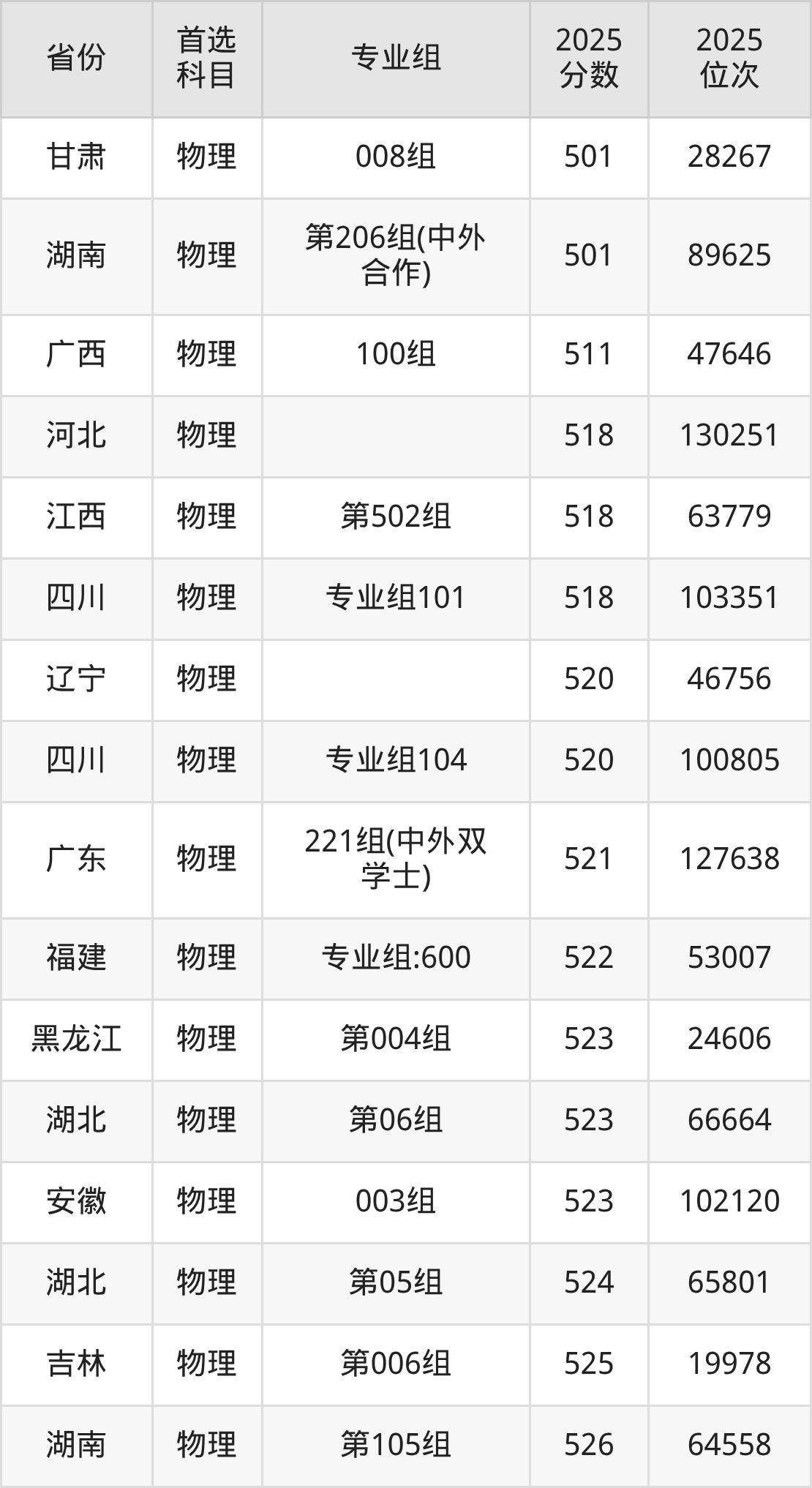 理科最低分对应地区为新疆,录取位次为15611,超一本线19分。